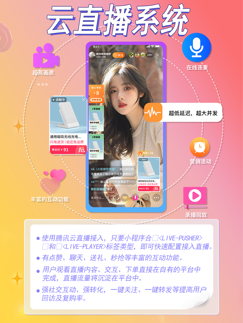 打通视频号、抖音、快手等多生态流量平台,引流到小程序、公众号等品牌终端,帮助商家沉淀专属私域流量