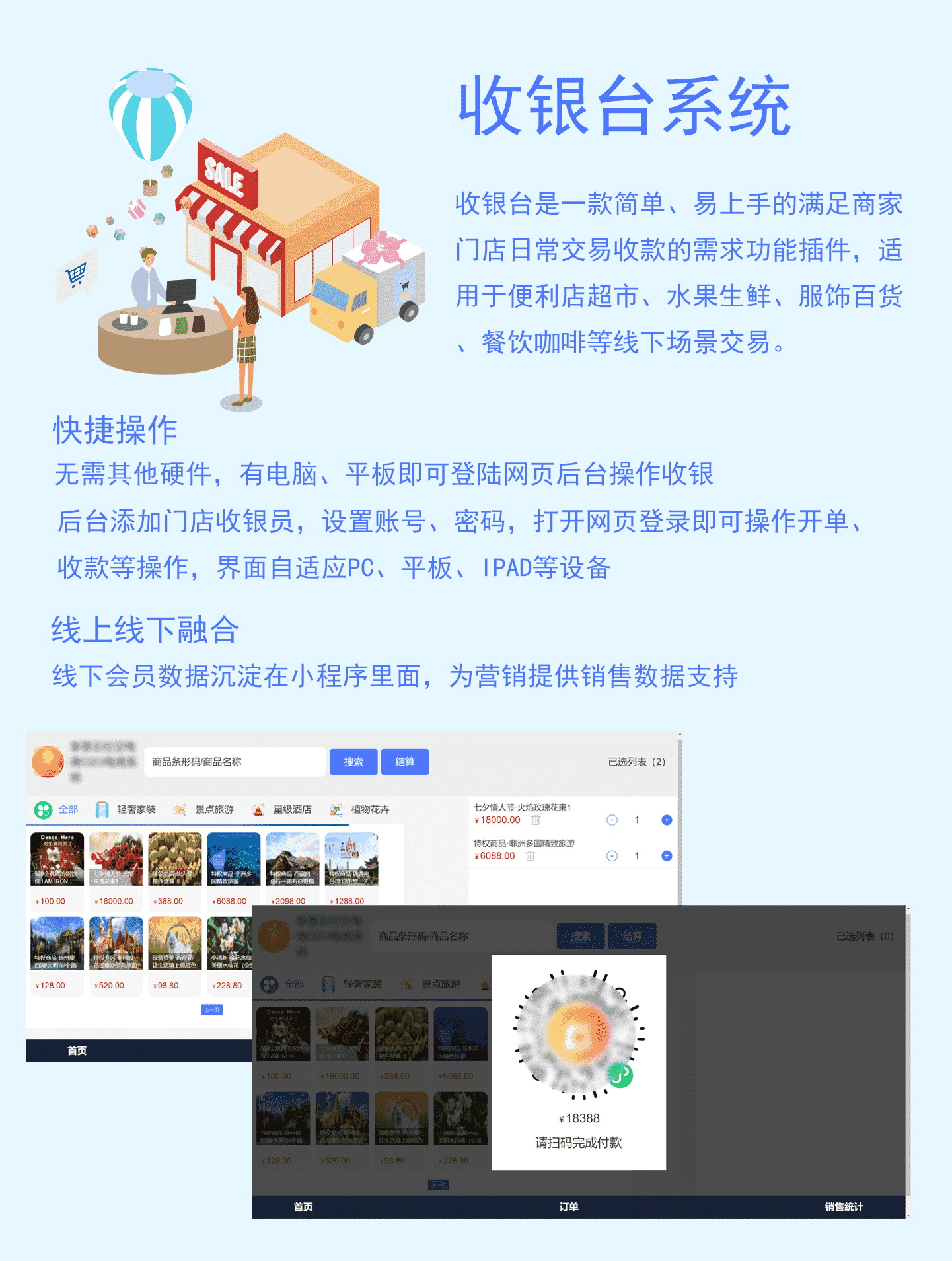 服务线下展厅,解决多个商家货品一码