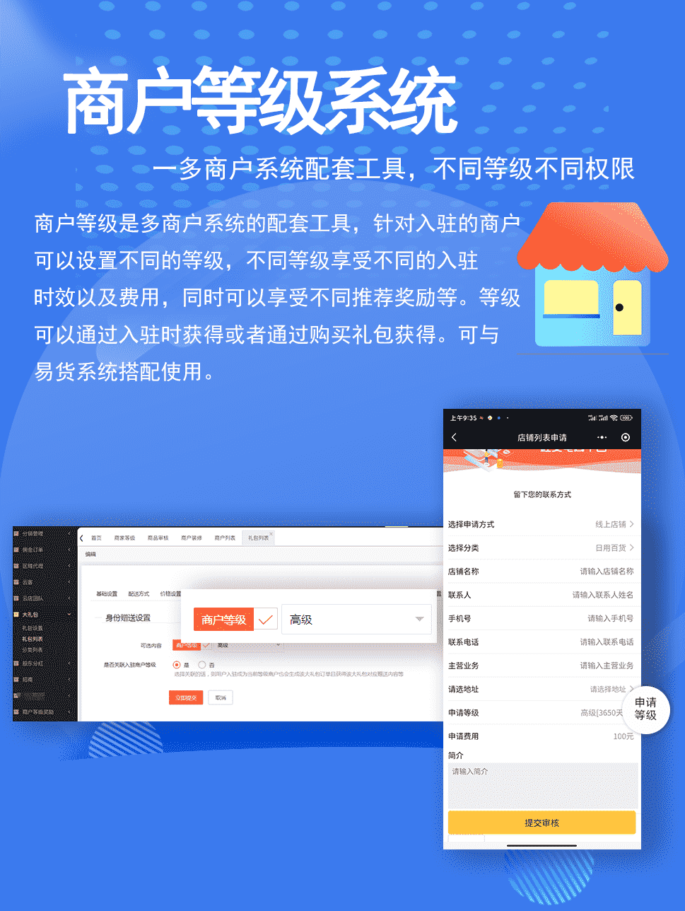 可以设置不同的商户等级,享受不同商户权益与服务费