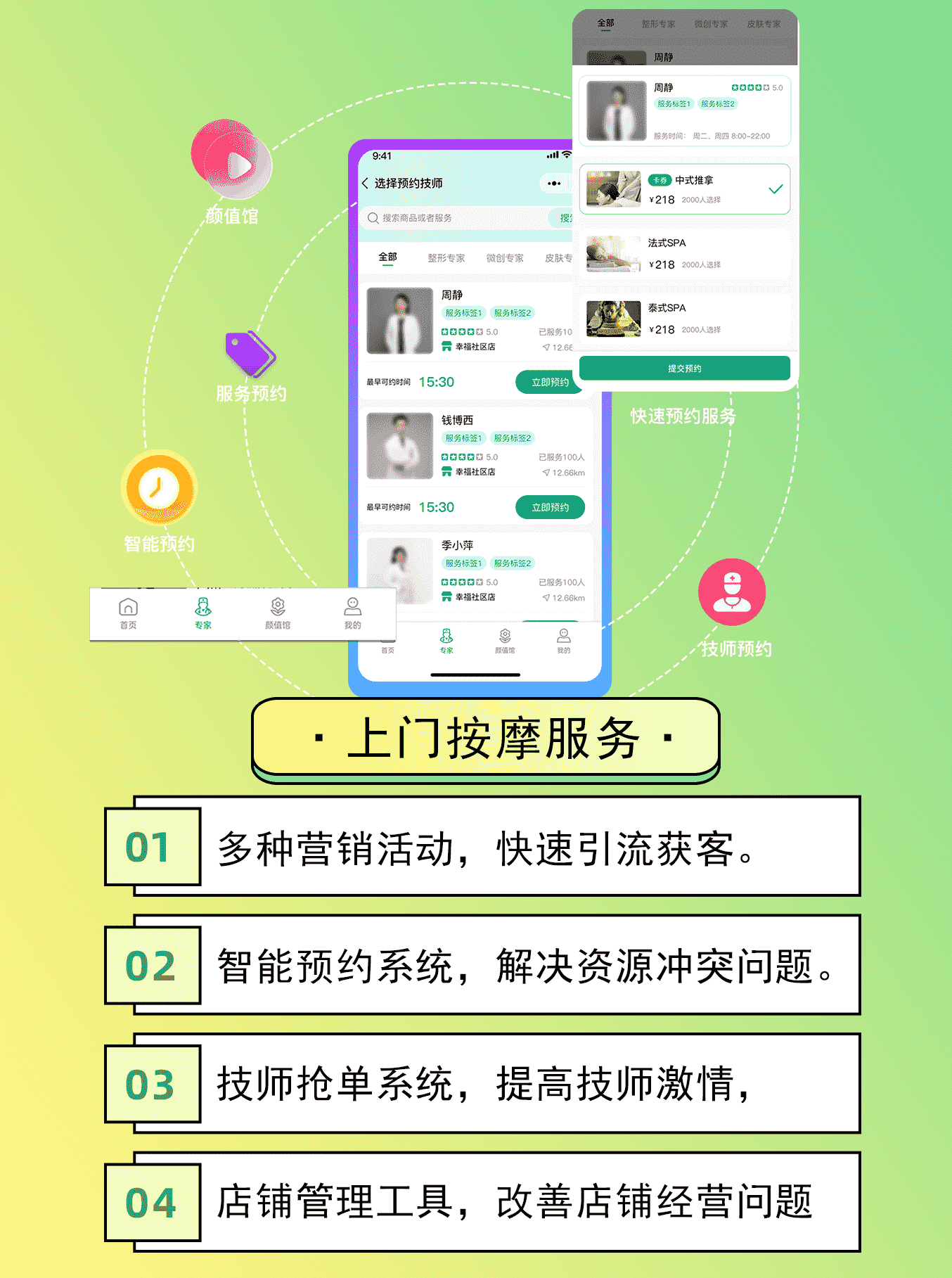 技师职能信息展示,更容易根据服务类型,性别,地域等进