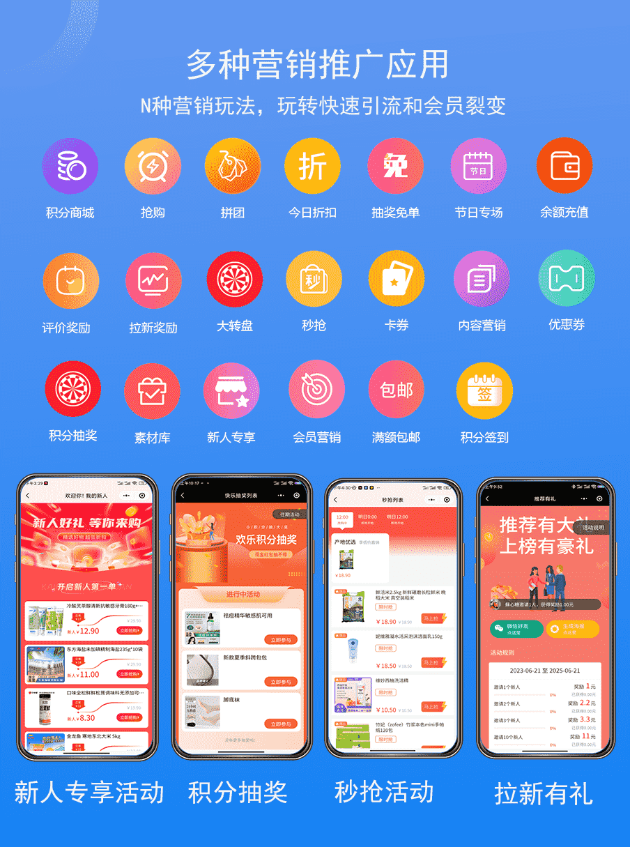 针对拉新、留存、激活等不同场景有各种多样化的营销活动场景,可制定多种营销方案。