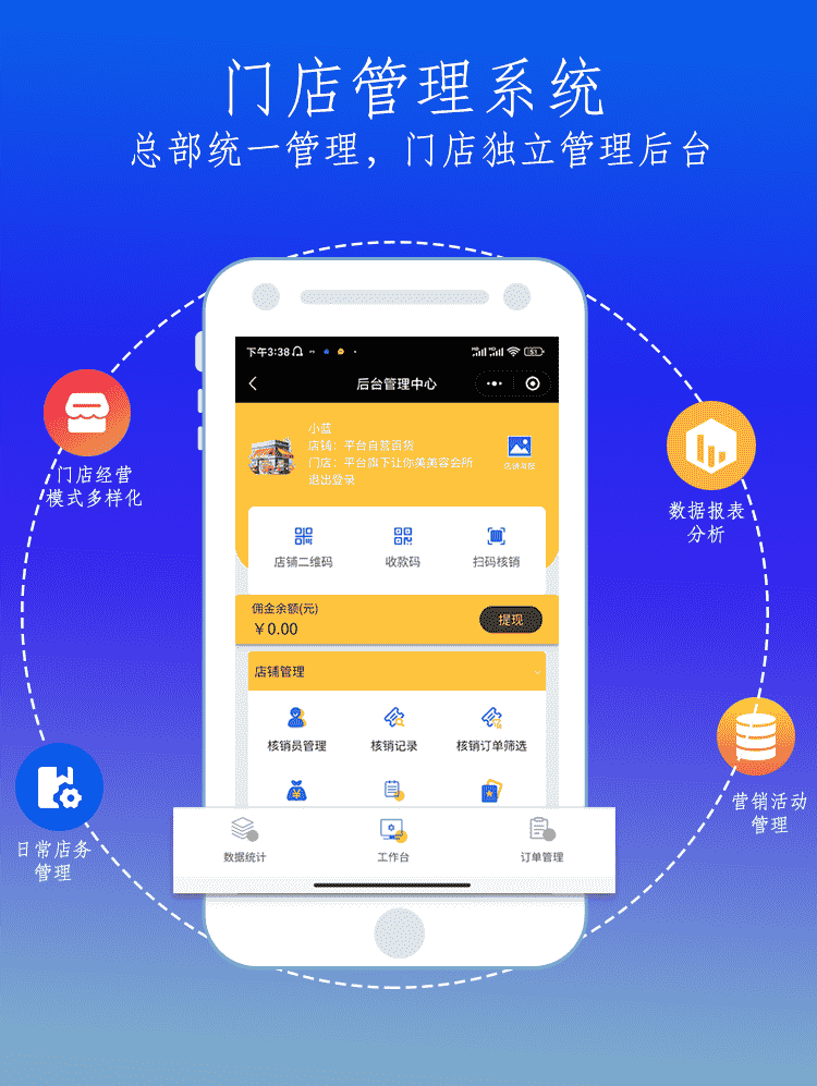 支持多店模式,融合门店系统产品的营销优势,实现了多门店间会员、活动、商品等多方位线上线下的打通。